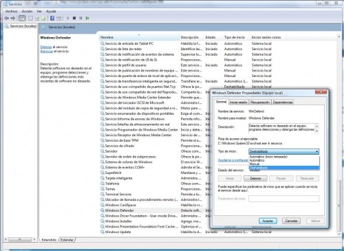 3. A la fregada con el Windows Defender : Aunque hayamos desactivado los servicios automáticos Defender seguirá molestando, así que para desactivarlo Panel de Control, Windows Defender, Herramientas, Opciones y deshabilitar la casilla Autostart / usar Windows Defender en la parte inferior de la ventana ( click en la imágen para verla en su tamaño original )